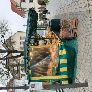 Heute ist Markt. Es gibt viele Marktstände.