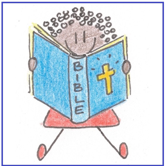 You read the holy book for Christians. In this picture Joyce is reading the Bible.