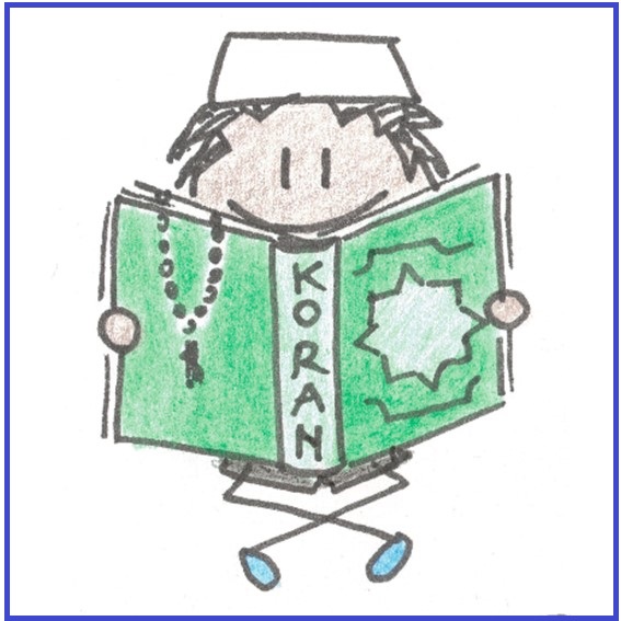 You read the holy book for Muslims. In this picture Noah is reading the Koran.