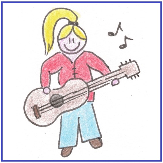 You make music on a guitar. In this picture Nina is playing her favourite song.