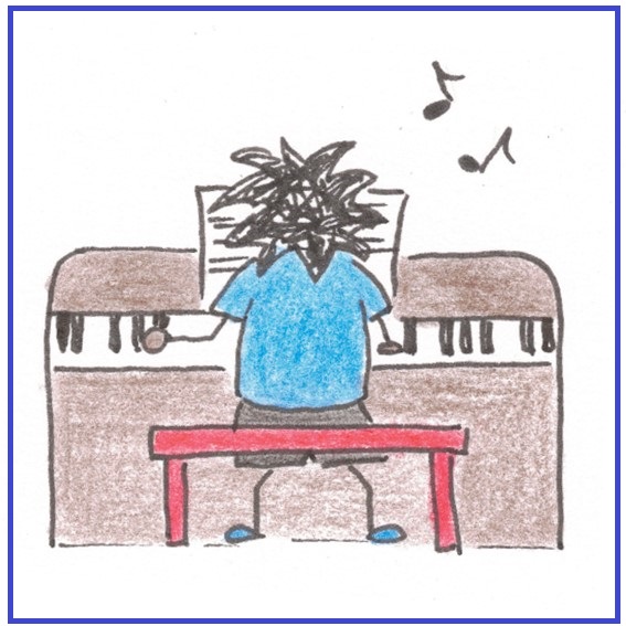 You make music on a piano. Playing the piano is one of Noah’s favourite hobbies.