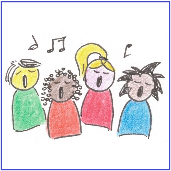 You make music with your mouth. You don’t talk but you sing. In this picture Joyce, Noah, Nina and Akira are singing in a choir.