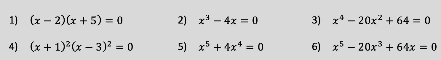 Gleichungen entnommen aus: Lambacher Schweizer Einführungsphase S. 28, Nr. 1 a), b), c), d), h), Nr. 4 a), Nr, 5 a)