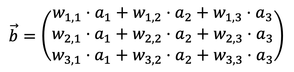 Die von der ersten Schicht a ausgehenden Werte lassen sich als Vektor zusammenfassen, wobei